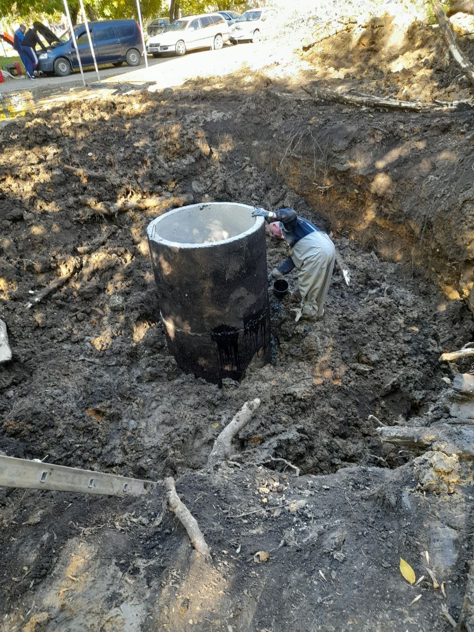 Строительство нового канализационного колодца из железобетонных колец с полным циклом работ